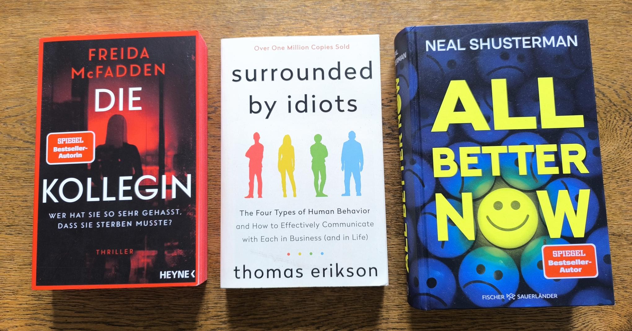 Zwei Bücher und ein Hörbuch – und kein einziges Foto. Leider habe ich die Bücher schon weiterverkauft, bevor ich ein Foto für den Blog machen…
